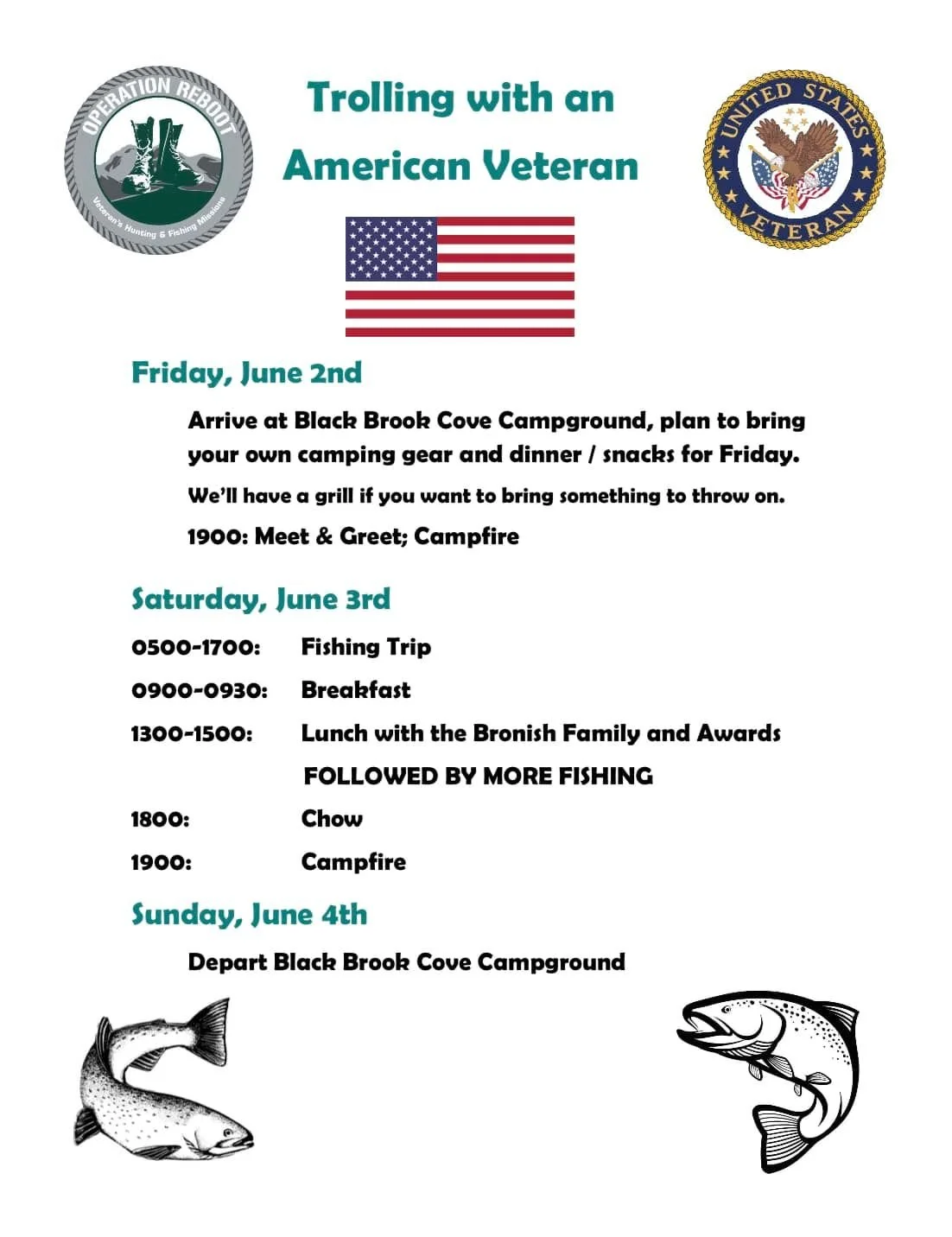 The annual Trolling with an American Veteran fishing weekend in memory of Steven Bronish, and co-hosted by the Bronish Family!
