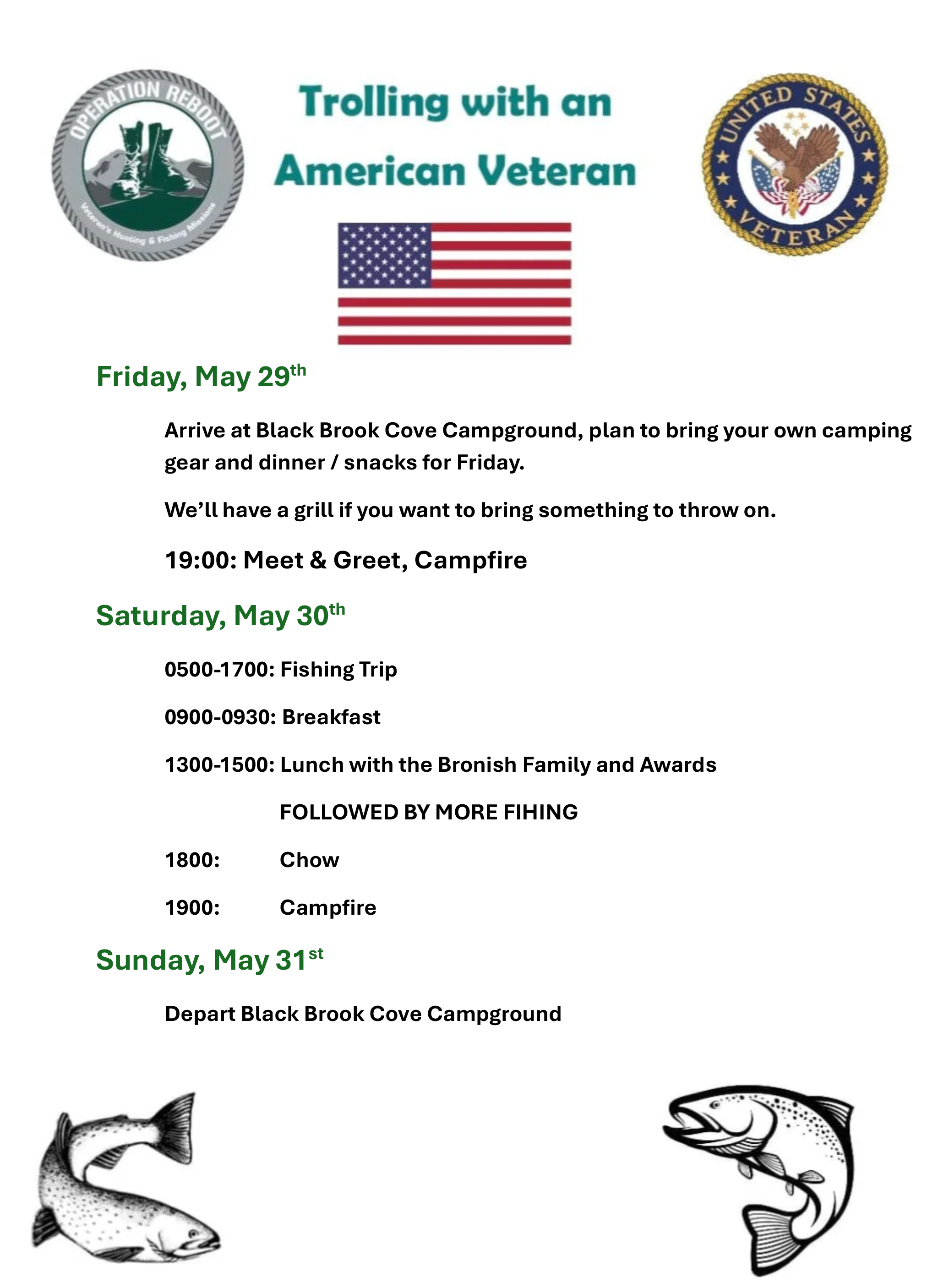 The annual Trolling with an American Veteran fishing weekend in memory of Steven Bronish, and co-hosted by the Bronish Family!